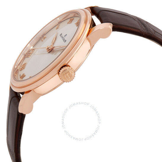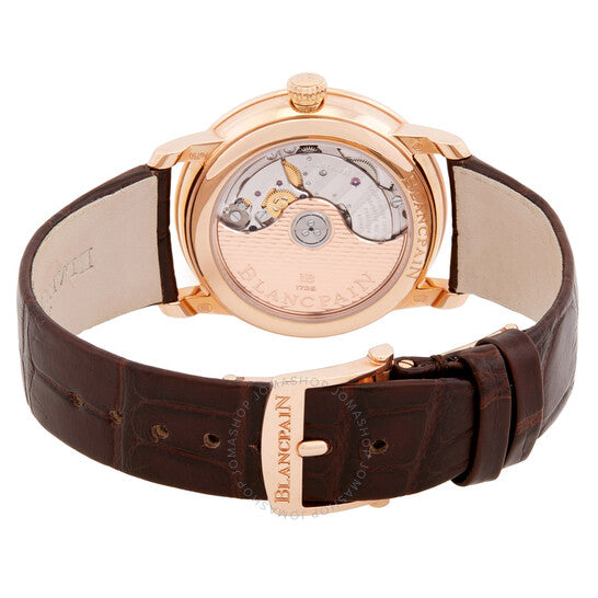 علبة من الذهب الوردي عيار ١٨ قيراطًا مع سوار من الجلد البني. إطار ثابت من الذهب الوردي عيار ١٨ قيراطًا. ميناء من الأوبالين مع عقارب من الذهب الوردي عيار ١٨ قيراطًا وعلامات ساعات بأرقام رومانية. نوع الميناء: تناظري. عرض التاريخ عند موضع الساعة ٣. حركة أوتوماتيكية من بلانكبان كاليبر ١١٥١، تحتوي على ٢٨ جوهرة، مكونة من ٢١٠ أجزاء، تنبض بمعدل ٢١٦٠٠ ذبذبة في الساعة، ولديها احتياطي طاقة يقارب ١٠٠ ساعة. زجاج ياقوتي مقاوم للخدش. شكل العلبة دائري، حجمها: ٣٣.٢ مم، سمكها: ٨.٩ مم. الوظائف: التاريخ، الساعة، الدقيقة، الثانية. سلسلة فيليريت. طراز ساعة رسمية. علامة الساعة: صناعة سويسرية. تنوعات المنتج: N06127O036042N055B. ساعة بلانكبان فيليريت كوارتز نسائية بمينا أوبالين، ٦١٢٧-٣٦٤٢-٥٥B.