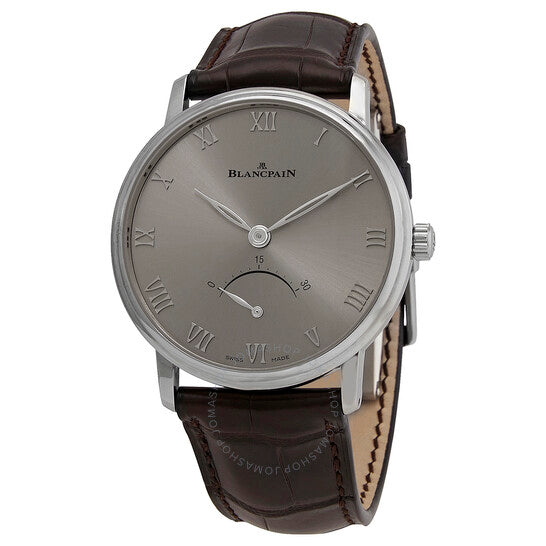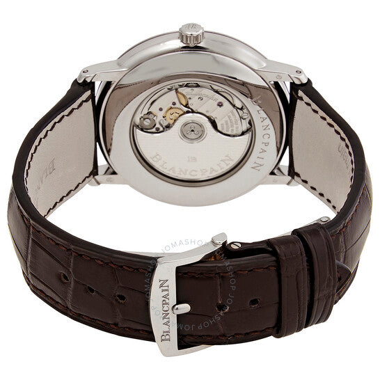 علبة من الذهب الأبيض عيار ١٨ قيراطًا مع سوار من جلد التمساح البني. إطار ثابت من الذهب الأبيض عيار ١٨ قيراطًا. ميناء رمادي بعقارب هيكلية فضية اللون وعلامات ساعات بأرقام رومانية. نوع الميناء: تناظري. موانئ فرعية ارتجاعية بزمن ٣٠ ثانية. حركة أوتوماتيكية من بلانكبان عيار ٧٦٦٣q مع احتياطي طاقة ٧٢ ساعة. زجاج من الياقوت المقاوم للخدش. تاج قابل للسحب/الدفع. غطاء خلفي شفاف. شكل دائري. حجم العلبة: ٤٠ مم. سمكها: ١٠.٨٨ مم. عرض السوار: ٢٢ مم. مشبك تانغ. مقاومة للماء حتى عمق ٣٠ مترًا / ١٠٠ قدم. الوظائف: الساعات، الدقائق. سلسلة فيليريت ألترا سليم. تصميم ساعة فاخرة. علامة الساعة: صناعة سويسرية. ساعة بلانكبان فيليريت ألترا سليم أوتوماتيكية للرجال بمينا رمادي ٦٦٥٣-١٥٠٤-٥٥B.