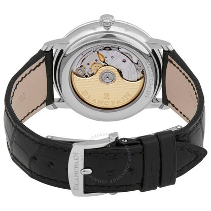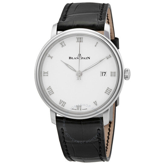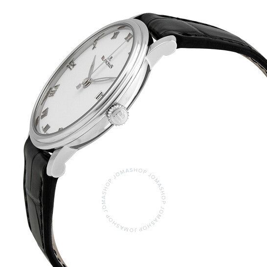 علبة من الفولاذ المقاوم للصدأ مع سوار أسود من جلد التمساح. إطار ثابت من الفولاذ المقاوم للصدأ. ميناء أبيض بعقارب فضية مضيئة وعلامات ساعات بأرقام رومانية. نوع الميناء: تناظري. عقارب مضيئة. عرض التاريخ عند موضع الساعة 3. حركة أوتوماتيكية من بلانكبان، عيار 1150. زجاج ياقوتي مقاوم للخدش. غطاء خلفي شفاف. شكل دائري. حجم العلبة: 38 مم. سمكها: 8.35 مم. مشبك قابل للطي. مقاومة للماء حتى عمق 30 مترًا / 100 قدم. الوظائف: التاريخ، الساعة، الدقائق، الثواني. سلسلة فيليه ألترا بلايت. تصميم ساعة فاخر. علامة الساعة: صناعة سويسرية. ساعة بلانكبان فيليه ألترا بلايت أوتوماتيكية للرجال بمينا أبيض، رقمها 6224 1127 55B.