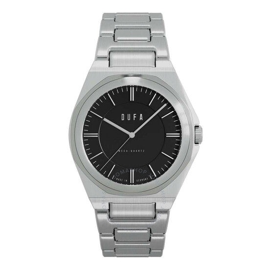 مجموعة Wachsmann ساعة رياضية أنيقة مستوحاة من سبعينيات القرن الماضي، مستوحاة من عالم صناعة الساعات العصرية. هيكل وسوار من الفولاذ المقاوم للصدأ فضي اللون. إطار ثابت من الفولاذ المقاوم للصدأ فضي اللون. ميناء أسود بعقارب وعلامات ساعات فضية اللون. علامات دقائق حول الحافة الخارجية. نوع الميناء: تناظري. حركة كوارتز Seiko - VH31. زجاج ياقوت مقاوم للخدش. تاج قابل للسحب/الدفع. غطاء خلفي صلب. شكل دائري، مقاس الهيكل: 32 مم، سمك الهيكل: 10 مم. عرض السوار: 19 مم، طول السوار: 8 بوصات. مشبك قابل للطي بزر ضغط. مقاومة للماء حتى عمق 50 مترًا / 165 قدمًا. الوظائف: الساعات، الدقائق، الثواني. سلسلة Wachsmann. تصميم كاجوال. علامة الساعة: Japan Movt. ساعة Dufa Wachsmann نسائية بمينا أسود DF-7037-22.