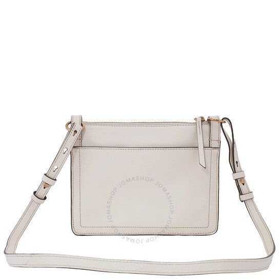 حقيبة كروس بودي نسائية من فوسيل. رمز المنتج: ZB1894105. اللون: أبيض. المقاس: طول 24.1 سم × عرض 5.7 سم × ارتفاع 18.4 سم. حقيبة كروس بودي جلدية بيضاء من فوسيل "تارين". تتميز حقيبة "تارين" بسحاب إغلاق، وأجزاء معدنية ذهبية اللون، وحزام كروس قابل للتعديل، وتصميم رفيع مع جيوب أمامية وخلفية منزلقة. الخامة: جلد.