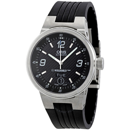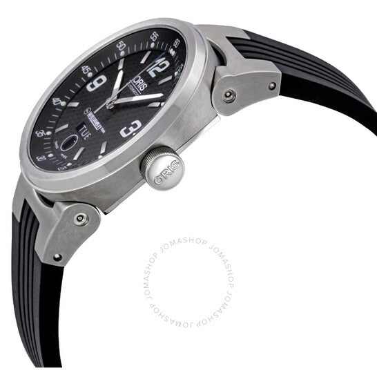 علبة من الفولاذ المقاوم للصدأ. سوار مطاطي أسود. ميناء أسود. إطار من الفولاذ المقاوم للصدأ. زجاج من الياقوت المقاوم للخدش. مشبك قابل للطي. قطر العلبة 40.5 مم. آلية حركة أوتوماتيكية. مقاومة للماء حتى عمق 50 مترًا (165 قدمًا). ساعة أوريس ويليامز داي ديت للرجال 63575604164RS