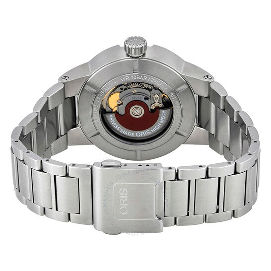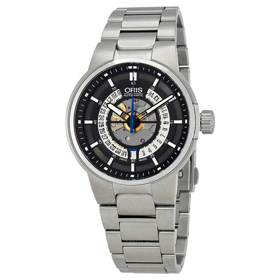 علبة من الفولاذ المقاوم للصدأ مع سوار من الفولاذ المقاوم للصدأ. إطار ثابت من الفولاذ المقاوم للصدأ. ميناء أسود هيكلي بعقارب ومؤشرات ساعات سوداء مضيئة. مؤشرات ٢٤ ساعة. مؤشرات دقائق حول الحافة الخارجية. نوع الميناء: تناظري. عقارب ومؤشرات مضيئة. عرض التاريخ عند موضع الساعة السادسة. حركة أوريس أوتوماتيكية عيار ٧٣٣ مع احتياطي طاقة ٣٨ ساعة. زجاج ياقوت مقاوم للخدش. غطاء خلفي شفاف. شكل دائري. حجم العلبة: ٤٢ مم. عرض السوار: ٢٤ مم. مشبك قابل للطي بزر ضغط. مقاومة للماء حتى عمق ١٠٠ متر / ٣٣٠ قدمًا. الوظائف: التاريخ، الساعة، الدقيقة، الثانية. تصميم ساعة كاجوال. علامة الساعة: صناعة سويسرية. ساعة أوريس ويليامز إنجن أوتوماتيكية للرجال ٠١ ٧٣٣ ٧٧٤٠ ٤١٥٤-٠٧ ٨ ٢٤ ٥٠S.