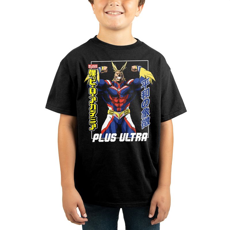 - مادة عالية الجودة - سلعة المعجبين My Hero Academia All Might السوداء ذات الأكمام القصيرة للأولاد الشباب مصنوعة من مادة جيرسي قطنية مسبقة الانكماش بنسبة 100%.