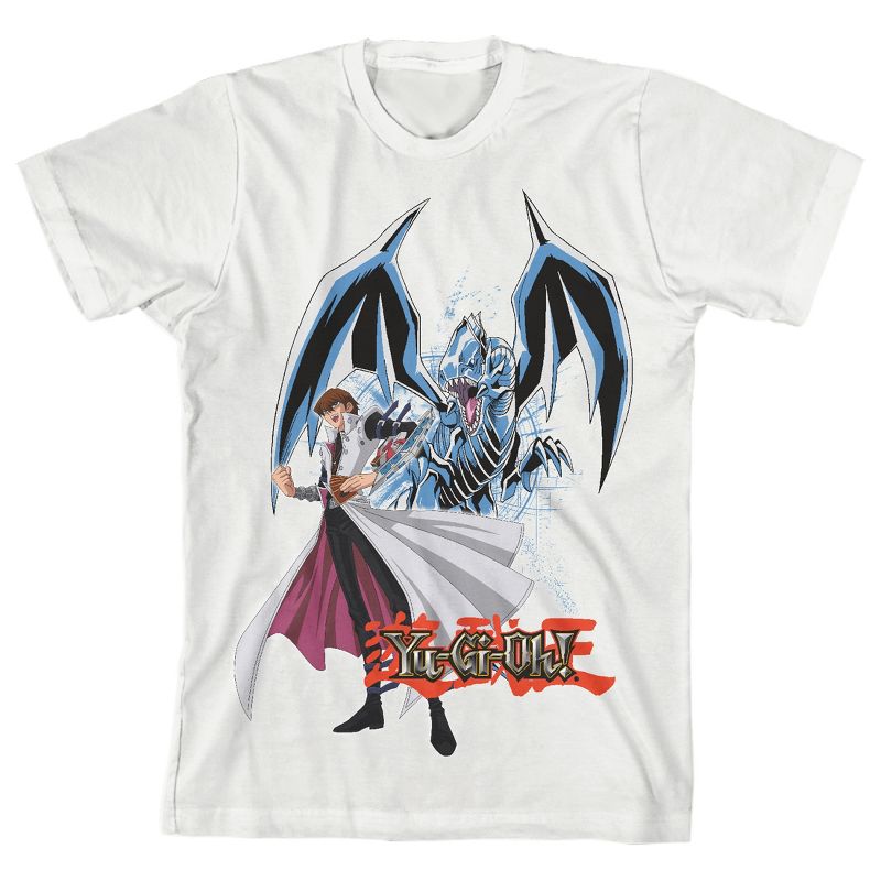 - تيشيرت يوغي يو بتصميم مخصص، يتميز بصورة كبيرة وملونة لسيتو كايبا والتنين الأبيض، مطبوعة باحترافية لضمان جودة طباعة تدوم طويلاً.
