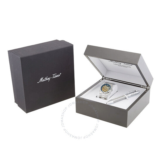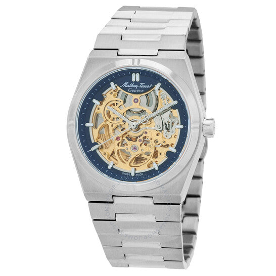 علبة وسوار من الفولاذ المقاوم للصدأ فضي اللون. إطار ثابت من الفولاذ المقاوم للصدأ فضي اللون. ميناء أزرق مع عقارب وعلامات ساعات فضية اللون. علامات دقائق حول الحافة الخارجية. نوع الميناء: تناظري. عقارب وعلامات مضيئة. حركة أوتوماتيكية كاتينا S800. زجاج من الياقوت المقاوم للخدش. تاج قابل للسحب/الدفع. غطاء خلفي شفاف. شكل العلبة دائري، مقاسها: 41 مم. مشبك قابل للطي مع مفتاح أمان. مقاومة للماء حتى عمق 50 مترًا / 165 قدمًا. الوظائف: الساعات، الدقائق، الثواني. سلسلة زيوس سكيليتون. تصميم ساعة كاجوال. علامة الساعة: صناعة سويسرية. ساعة ماثي تيسوت زيوس سكيليتون أوتوماتيكية للرجال بمينا أزرق H118CFABU.