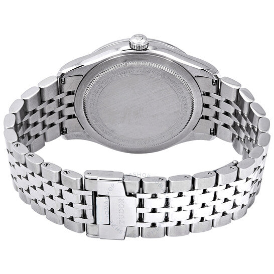 Stainless steel case with a stainless steel bracelet. Fixed stainless steel bezel. Opaline dial with blue leaf-style hands and alternating index and Arabic numeral hour markers. Minute markers around the outer rim. Dial Type: Analog. Date display at the 3 o'clock position. Tudor calibre 2824 automatic movement, based upon ETA 2824, containing 25 Jewels, bitting at 28800 vph, and has a power reserve of approximately 38 hours. Scratch resistant sapphire crystal. Screw down crown. Solid case back. Round case shape. Case size: 41 mm. Band width: 20 mm. Tang clasp. Water resistant at 100 meters / 330 feet. Functions: date, hour, minute, second. Casual watch style. Watch label: Swiss Made. Tudor 1926 Automatic 41 mm Opaline Dial Men's Watch M91650-0005.
