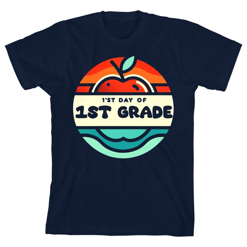 - Custom Design: Features a colorful apple inside a blue and red circle with “1st Day Of 1st Grade” text for a cheerful back-to-school look