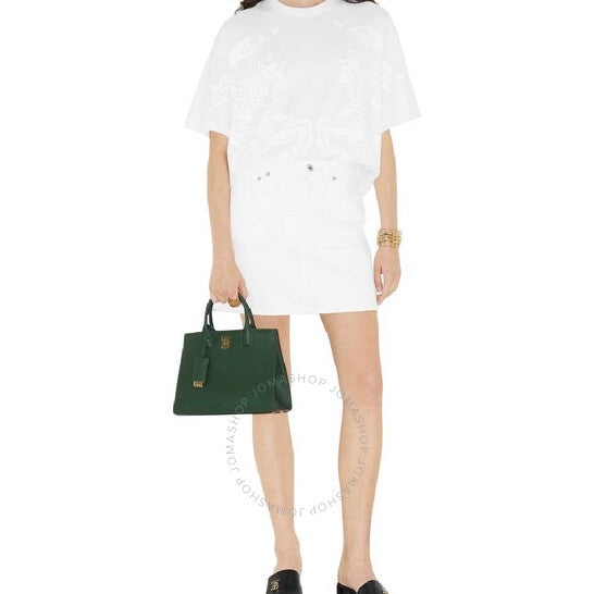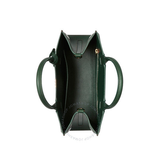 Burberry Ladies Top Handle Bag. SKU: 8074079. Color: Vine. Size: 10.6" x 4.3" x 7.9". Burberry Adjustable Detachable Shoulder Strap Leather Bag. This Bag features two leather top handles, an adjustable, detachable shoulder strap, one exterior slip pocket, one interior slip pocket, one interior zip pocket, open top with magnetic closure, hand-painted edges, polished metal hardware and a leather-wrapped mirror charm. 100% Calf Leather, 100% Lambskin. Made in Italy.