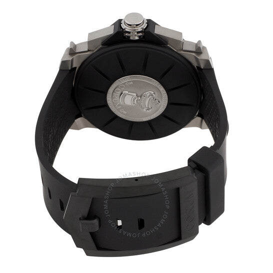 Grey titanium case with a black rubber strap. Fixed black titanium bezel. White dial with silver-tone hands and Arabic numeral hour markers. Minute markers around the outer rim. Dial Type: Analog. Luminescent hands and markers. Chronograph - two sub-dials displaying: 1/8th second and 30 minute. Corum Calibre CO 895 Automatic movement, containing 40 Jewels, bitting at 28800 vph, and has a power reserve of approximately 42 hours. Scratch resistant sapphire crystal. Pull / push crown. Solid case back. Dodecagon case shape, case size: 48 mm, case thickness: 18 mm. Band width: 24 mm, band length: 8 inches. Tang clasp. Water resistant at 100 meters / 330 feet. Functions: chronograph, hour, minute, second. Additional Info: hours, minutes, split seconds chronograph, leap seconds. Admiral Cup Series. Luxury watch style. Watch label: Swiss Made. Item Variations: A895/04302. Corum Admiral Cup Chronograph Automatic White Dial Men's Watch A895/04302.