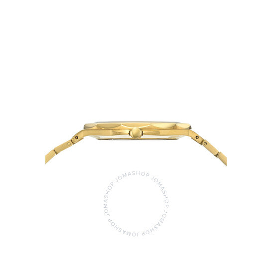 Gold-tone stainless steel case and bracelet. Fixed gold-tone stainless steel bezel. Blue dial with gold-tone hands and index hour markers. Dial Type: Analog. Date display at the 3 o'clock position. Miyota GM 17 Quartz quartz movement. Scratch resistant mineral crystal. Pull / push crown. Solid case back. Round case shape, case size: 41 mm, case thickness: 6.8 mm. Band width: 22 mm. Fold over with double push button release clasp. Water resistant at 50 meters / 165 feet. Functions: date, hour, minute. Additional Info: stunning mother of pearl dial with topaz gemstone hour markers. Alexander Series. Luxury watch style. Watch label: Japan Movt. Porsamo Bleu Alexander White Dial Men's Watch 1232BALS.