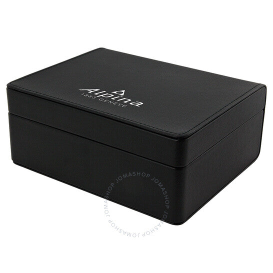 Stainless steel case with a black leather strap. Fixed stainless steel bezel. Silver dial with luminous silver-tone hands and alternating index and Arabic numeral hour markers. Minute markers around the outer rim. Dial Type: Analog. Luminescent hands. Date display above the 6 o'clock position. Alpina calibre AL-525 automatic movement, based upon Sellita SW200-1, containing 26 Jewels, bitting at 28800 vph, and has a power reserve of approximately 38 hours. Scratch resistant sapphire crystal. Screw down crown. Solid case back. Round case shape. Case size: 41.5 mm. Case thickness: 14 mm. Band width: 21 mm / 18 mm. Band length: 8 inches. Tang clasp. Water resistant at 50 meters / 165 feet. Functions: date, hour, minute, second. Dress watch style. Watch label: Swiss Made. Item Variations: AL 525S4E6, AL.525S4E6, AL525S4E6. Alpina Alpiner Automatic Silver Dial Black Leather Men's Watch AL-525S4E6.