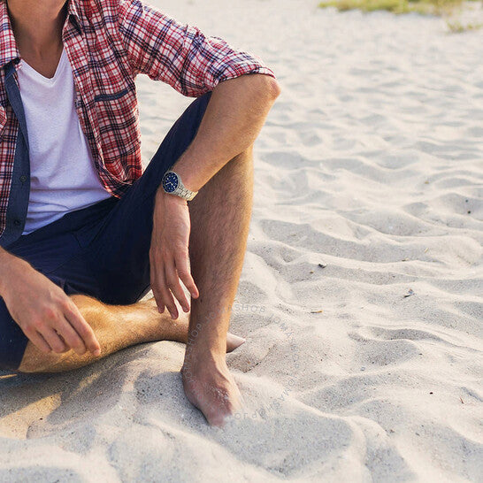 Stainless steel case with a stainless steel bracelet. Uni-directional rotating coin edge stainless steel bezel with an inlaid blue metallic ring. Blue dial with silver-tone Mercedes-logo, sword, and Breguet-style hands and dot hour markers. Minute markers around the outer rim. Dial Type: Analog. Luminescent hands and markers. Date display at the 3 o'clock position. Miyota caliber 8215 automatic movement, containing 21 Jewels, bitting at 21600 vph, and has a power reserve of approximately 42 hours. Scratch resistant Krysterna crystal. Screw down crown. Solid case back. Round case shape. Case size: 42 mm. Case thickness: 13.5 mm. Band length: 8 inches. Fold over clasp with a safety release. Water resistant at 200 meters / 660 feet. Functions: date, hour, minute, second. Aquadiver Series. Dive watch style. Watch label: Japan Movt. Stuhrling Original Aquadiver Automatic Blue Dial Men's Watch M13544.