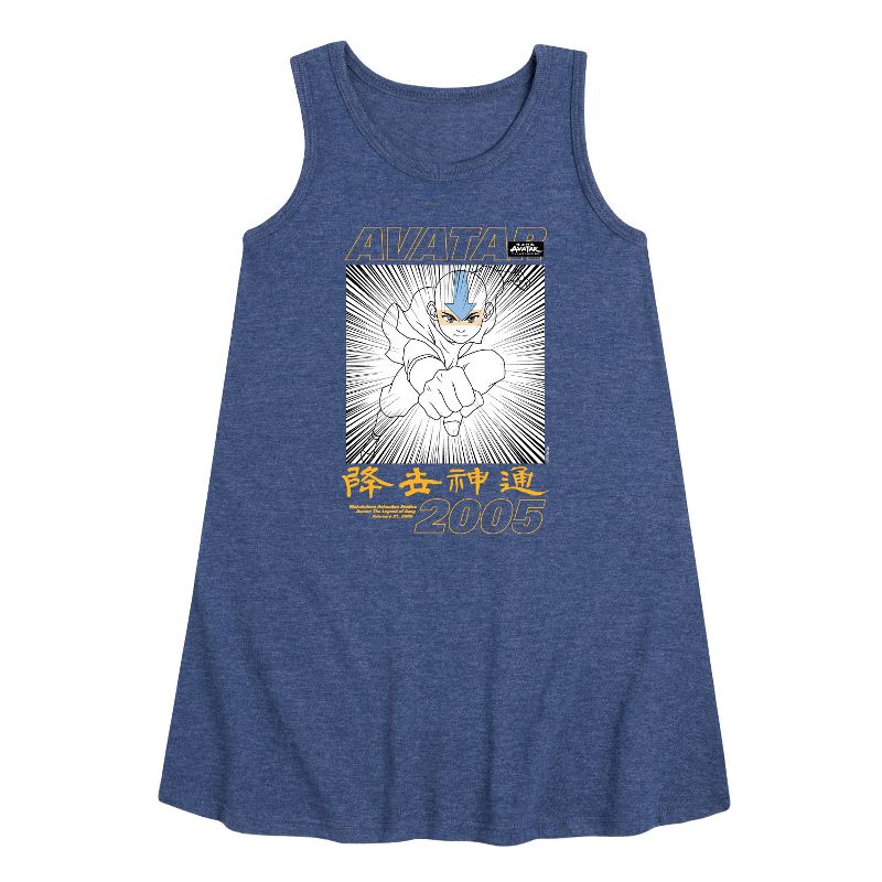 Avatar: The Last Airbender - Aang 2005 - Youth Girls A-line Dress - Bring the world of bending to life with Avatar: The Last Airbender graphic apparel, featuring dynamic designs that highlight the beloved characters and their elemental powers. From Aang’s airbending grace to Zuko’s fiery redemption and Appa’s loyal strength, each piece captures the heart, humor, and epic journey of this iconic animated series. Perfect for fans who connect with the balance of water, earth, fire, and air.