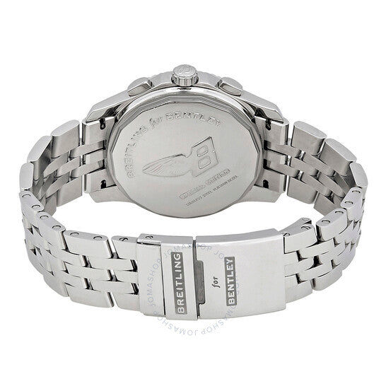Stainless steel case with a stainless steel bracelet. Fixed stainless steel bezel. Blue dial with luminous silver-tone hands and index hour markers. Stopwatch and minute markers around the outer rim. Dial Type: Analog. Luminescent hands and markers. Date display at the 6 o'clock position. Chronograph - three sub-dials displaying: 60 second, 12 hour and 1/100th of a second. Breitling Calibre 26 automatic movement with a 42-hour power reserve. Scratch resistant sapphire crystal. Screw locked crown. Solid case back. Case size: 42 mm. Case thickness: 16.3 mm. Round case shape. Double lock fold over clasp. Water resistant at 100 meters / 330 feet. Functions: chronograph, chronometer, date, hour, minute, second. Luxury watch style. Watch label: Swiss Made. Breitling Bentley Automatic Chronograph Blue Dial Men's Watch P2636212/C707-SS.