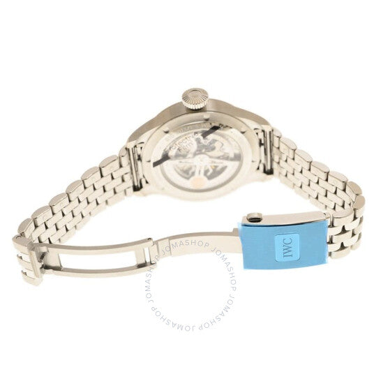 Stainless steel case with a silver-tone stainless steel bracelet. Fixed stainless steel bezel. Blue dial with Arabic numeral hour markers. IWC Calibre 82100 automatic movement with a 60-hour power reserve. Scratch resistant sapphire crystal. Screw down crown. Transparent see through case back. Round case shape, case size: 43 mm, case thickness: 13 mm. Deployment clasp. Water resistant at 100 meters / 330 feet. Functions: hour, minute, second. Big Pilot Series. Sport watch style. Watch label: Swiss Made. IWC Big Pilot 43 Automatic Blue Dial Men's Watch IW329304.