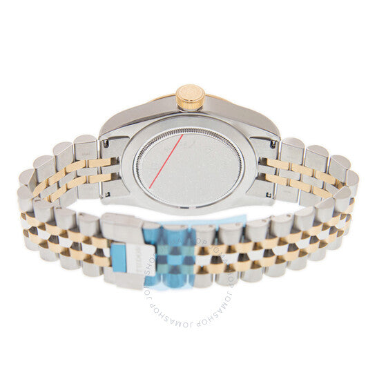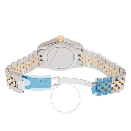 Stainless steel case with a stainless steel bezel with yellow gold links. Fixed yellow gold-tone bezel. Black dial with luminous yellow gold-tone snowflake hands and dot hour markers. Minute markers around the outer rim. Dial Type: Analog. Luminescent hands and markers. Tudor Calibre 2824 Automatic movement, based upon ETA 2824, containing 25 Jewels, bitting at 28800 vph, and has a power reserve of approximately 38 hours. Scratch resistant sapphire crystal. Screw down crown. Solid case back. Round case shape, case size: 41 mm. Fold over clasp. Water resistant at 150 meters / 500 feet. Functions: hour, minute, second. Black Bay 41 Series. Luxury watch style. Watch label: Swiss Made. Tudor Black Bay 41 Automatic Black Dial Men's Watch M79543-0001.