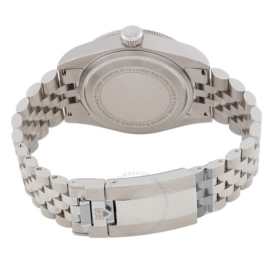 Silver-tone stainless steel case and bracelet. Uni-directional rotating black stainless steel bezel. Black dial with silver-tone hands and batons hour markers. Minute markers around the outer rim. Dial Type: Analog. Luminescent hands and markers. Tudor Calibre MT5602-U automatic movement with a 70-hour power reserve. Scratch resistant sapphire crystal. Screw down crown. Solid case back. Round case shape, case size: 41 mm, case thickness: 13.6 mm. Band width: 21 mm. Fold over clasp. Water resistant at 200 meters / 660 feet. Functions: hour, minute, second. Black Bay Series. Sport watch style. Watch label: Swiss Made. Tudor Black Bay Automatic Black Dial Men's Watch M7941A1A0NU-0003.