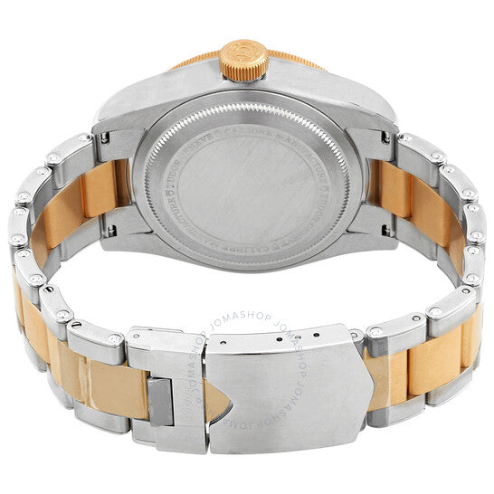 Stainless steel case with a two-tone (silver-tone and gold-tone) stainless steel bracelet. Bi-directional rotating gold-tone bezel with a black and beet root ring showing 24 hour markings. Black dial with luminous gold-tone hands and dot hour markers. Minute markers around the outer rim. Dial Type: Analog. Luminescent hands and markers. Date display at the 3 o'clock position. Tudor calibre MT5652 automatic movement, containing 26 Jewels, bitting at 28800 vph, and has a power reserve of approximately 70 hours. Scratch resistant sapphire crystal. Screw down crown. Solid case back. Round case shape. Case size: 41 mm. Fold over clasp with a safety release. Water resistant at 200 meters / 660 feet. Functions: date, GMT, second time zone, hour, minute, second, chronometer. Black Bay Series. Luxury watch style. Watch label: Swiss Made. Tudor Black Bay Automatic Chronometer Black Dial Men's Watch M79833MN-0001.