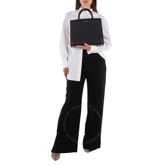 Bvlgari Ladies Tote. SKU: 291652. Barcode: 8052749234668. Color: Black. Size: 33 x 26 x 11 cm. Bvlgari Black Leather Logo Tote 291652. Made from leather, this Bvlgari features a center zip compartment, dual top carry handles, patch pockets, gold-tone hardare and logo plaque on front. 100% Leather. Made in Italy.