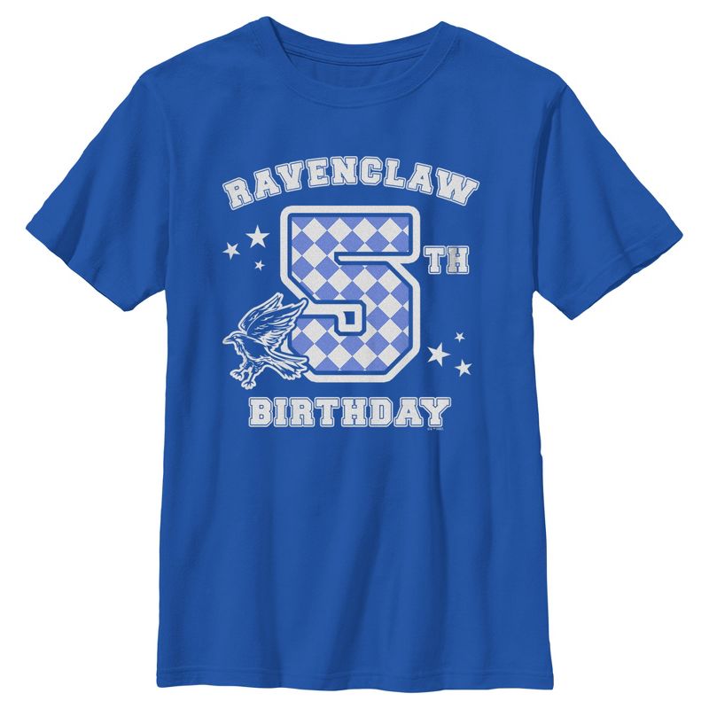 - Strut your stuff with this stylish new boys' t-shirt that is perfect for birthdays! Featuring the iconic Ravenclaw eagle and "5th birthday" printed in white and blue lettering across the front.