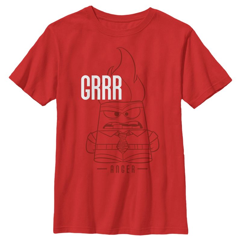 It's time to start making happy memories with exciting new officially licensed apparel for the whole family from Pixar's beloved film Inside Out! This Boys' Pixar Inside Out Grrr Anger Graphic T-Shirt features an awesome outline graphic of Anger with his signature fire hair looking furious with his name written below him and the expression: "Grrr" printed in bold, white lettering on the upper side. Not even Disgust can find something negative to say about these fun new Inside Out styles!