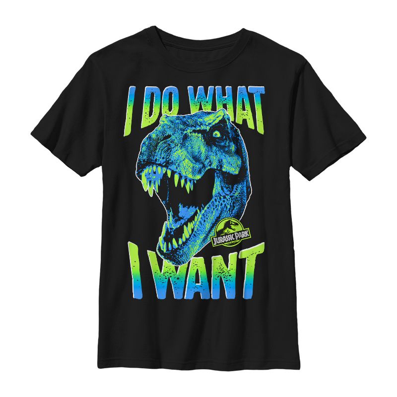 No one tells a T. Rex what to do...Channel some of that dinosass attitude with the Jurassic Park T. Rex Do What I Want Boys' T-Shirt. A cool ombre print reads "I Do What I Want" next to a Tyrannosaurus rex on this cool youth Jurassic World tee.