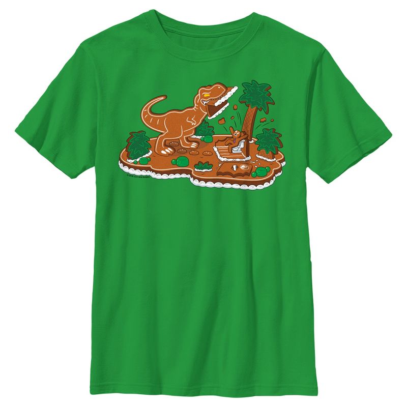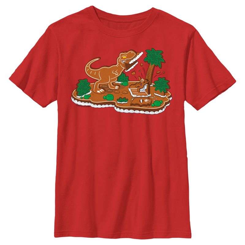 - Rampage and roar into the holidays with this new boys' t-shirt featuring a fun and delicious gingerbread T-Rex rampaging through a gingerbread island!
