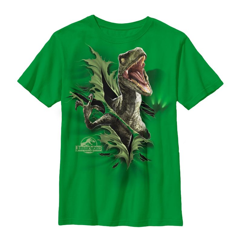You may not make it out of Jurassic Park in one piece, but at least you got the awesome Jurassic World Velociraptor Rip Boys' T-Shirt for your visit! Dress sharp (did someone say something about sharp teeth!?) with an awesome dinosaur tee inspired by your favorite T. Rex movie.
