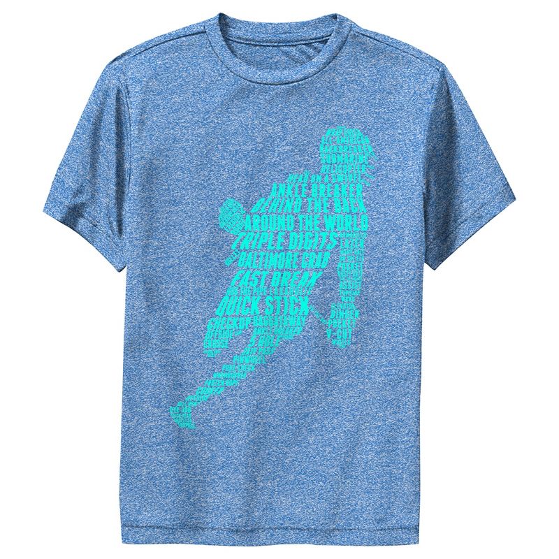 - Be the best with this stylish new boys' t-shirt that is perfect for doing your favorite sport! Featuring a silhouette of a lacrosse player made from laxer terms like "Around the world" and "Fast break," across the front.