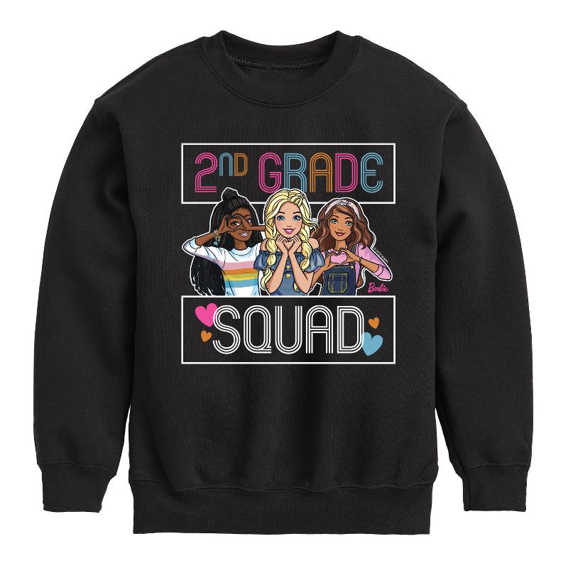 Barbie - Back To School - 2nd Grade Squad - Toddler And Youth Crewneck Fleece Sweatshirt - Step into the glamorous pink world of Barbie with our officially licensed graphic garments for the fashion-forward! Whether you dream of being a fashion designer, a mermaid princess, or a world-traveling explorer, our garments bring Barbie's world to life with vibrant colors and playful prints. Crafted with quality materials and attention to detail, each piece ensures comfort and durability for all-day play. Express your unique sense of style and imagination with our exclusive Barbie graphic apparel!