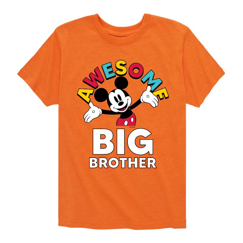 Mickey And Friends - Awesome Big Brother - Youth Short Sleeve Graphic T-Shirt - Add a touch of magic to your wardrobe with this graphic apparel featuring iconic Disney designs. Showcasing beloved characters and classic imagery, each piece combines nostalgic charm with modern style—perfect for Disney fans of all ages. Whether you're headed to the parks or just adding whimsy to your everyday look, these graphics bring the magic to life.