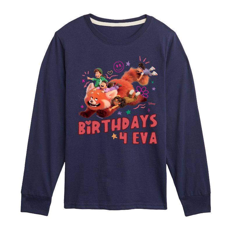 Disney Turned Red - Celebration - Birthdays 4 Eva - Youth Long Sleeve Graphic T-Shirt - Add a touch of magic to your wardrobe with this graphic apparel featuring iconic Disney designs. Showcasing beloved characters and classic imagery, each piece combines nostalgic charm with modern style—perfect for Disney fans of all ages. Whether you're headed to the parks or just adding whimsy to your everyday look, these graphics bring the magic to life.