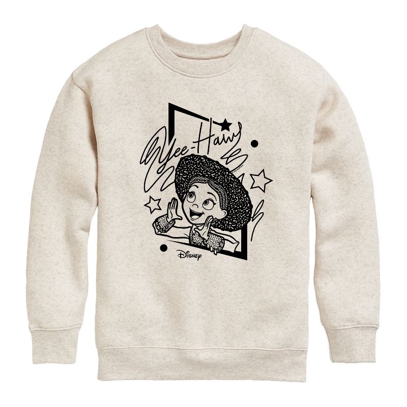 Toy Story - Jesse Yeehaw - Toddler & Youth Crewneck Fleece Sweatshirt - Add a touch of magic to your wardrobe with this graphic apparel featuring iconic Disney designs. Showcasing beloved characters and classic imagery, each piece combines nostalgic charm with modern style—perfect for Disney fans of all ages. Whether you're headed to the parks or just adding whimsy to your everyday look, these graphics bring the magic to life.