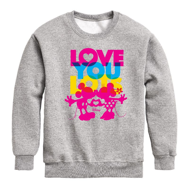Disney - Love You Lots - Toddler & Youth Crewneck Fleece Sweatshirt - Add a touch of magic to your wardrobe with this graphic apparel featuring iconic Disney designs. Showcasing beloved characters and classic imagery, each piece combines nostalgic charm with modern style—perfect for Disney fans of all ages. Whether you're headed to the parks or just adding whimsy to your everyday look, these graphics bring the magic to life.