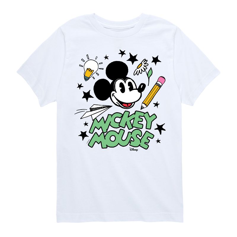 Disney - Mickey Mouse - School Icons - Youth Short Sleeve Graphic T-Shirt - Add a touch of magic to your wardrobe with this graphic apparel featuring iconic Disney designs. Showcasing beloved characters and classic imagery, each piece combines nostalgic charm with modern style—perfect for Disney fans of all ages. Whether you're headed to the parks or just adding whimsy to your everyday look, these graphics bring the magic to life.