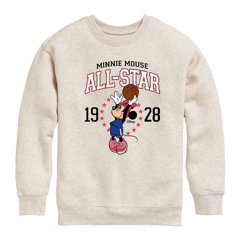 Disney - Minnie All -Star 1928 - Toddler And Youth Crewneck Fleece Sweatshirt - Add a touch of magic to your wardrobe with this graphic apparel featuring iconic Disney designs. Showcasing beloved characters and classic imagery, each piece combines nostalgic charm with modern style—perfect for Disney fans of all ages. Whether you're headed to the parks or just adding whimsy to your everyday look, these graphics bring the magic to life.
