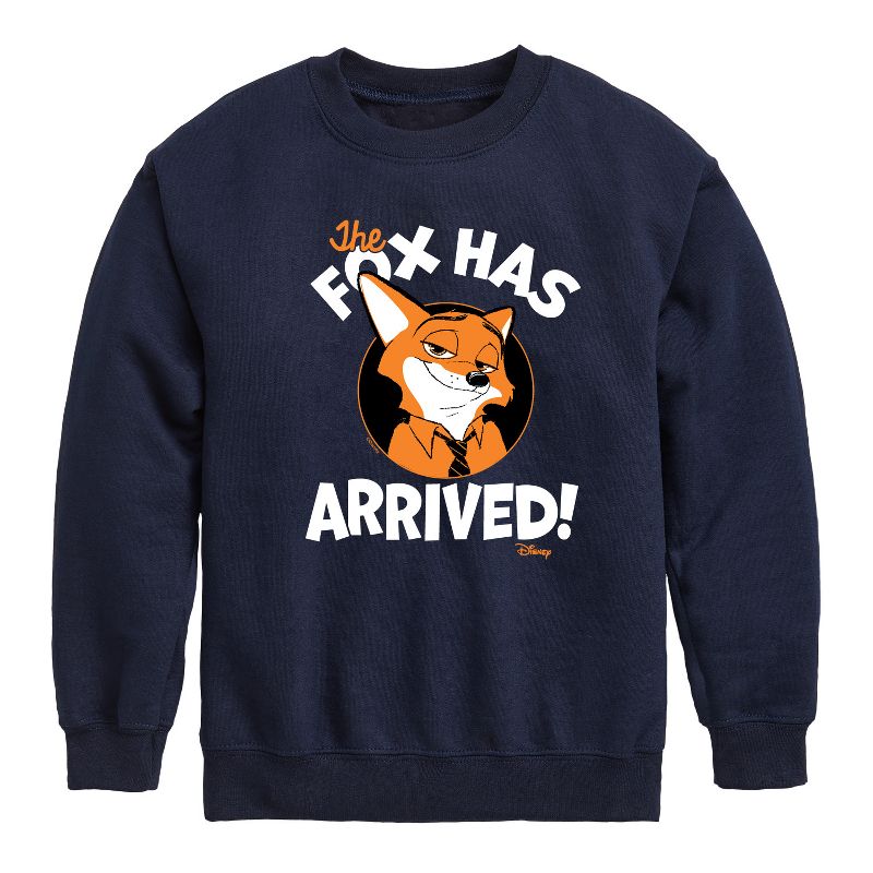Disney Zootopia - The Fox Has Arrived - Toddler & Youth Crewneck Fleece Sweatshirt - Add a touch of magic to your wardrobe with this graphic apparel featuring iconic Disney designs. Showcasing beloved characters and classic imagery, each piece combines nostalgic charm with modern style—perfect for Disney fans of all ages. Whether you're headed to the parks or just adding whimsy to your everyday look, these graphics bring the magic to life.