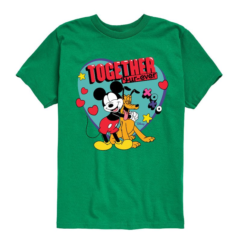 Disney - Together Fur Ever Mickey Pluto - Youth Short Sleeve Graphic T-Shirt - Add a touch of magic to your wardrobe with this graphic apparel featuring iconic Disney designs. Showcasing beloved characters and classic imagery, each piece combines nostalgic charm with modern style—perfect for Disney fans of all ages. Whether you're headed to the parks or just adding whimsy to your everyday look, these graphics bring the magic to life.