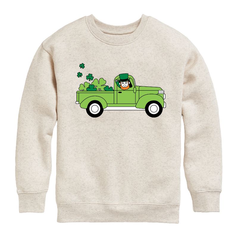 Instant Message - St. Patrick's Day - Leprechaun Truck - Delivering Luck - Toddler And Youth Crewneck Fleece Sweatshirt - Instant Message is an online specialty fashion retailer for everything from funny to inspiring printed apparel. We offer a range of garments from long sleeve and relaxed fit t-shirts, to lightweight french-terry long sleeve shirts, hoodies and graphic print pullovers. Our products feature fun and trendy graphics that are perfect for any occasion and also make great gifts.