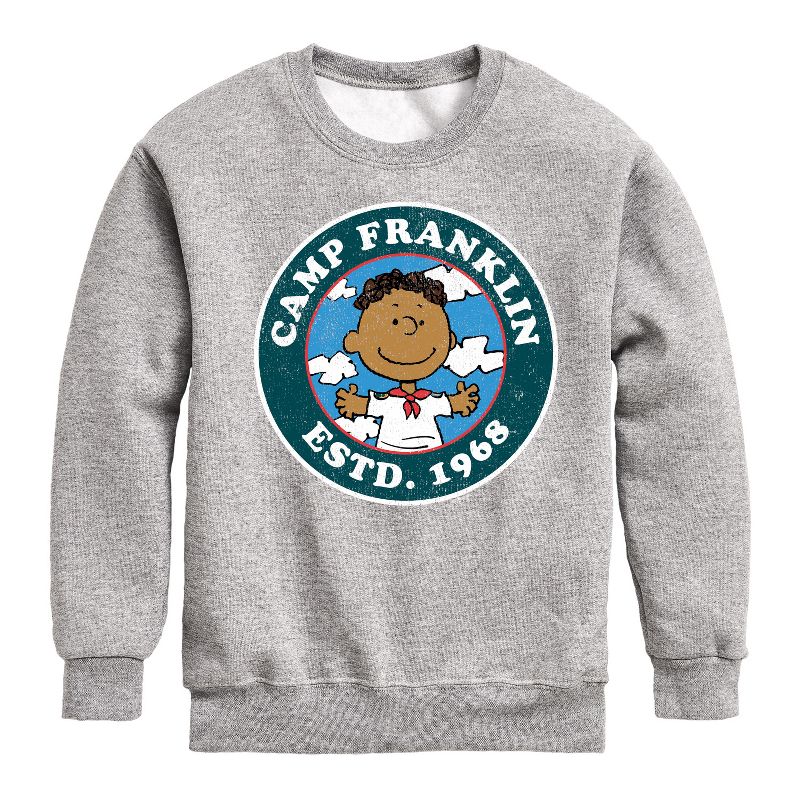 Peanuts - Camp Franklin - Toddler & Youth Crewneck Fleece Sweatshirt - From the best-loved comic strip in history comes officially licensed PEANUTS apparel for fans everywhere. Show your love for Charlie Brown, Snoopy, Woodstock, Lucy, Linus, Pigpen and the whole gang. Copyright Peanuts.