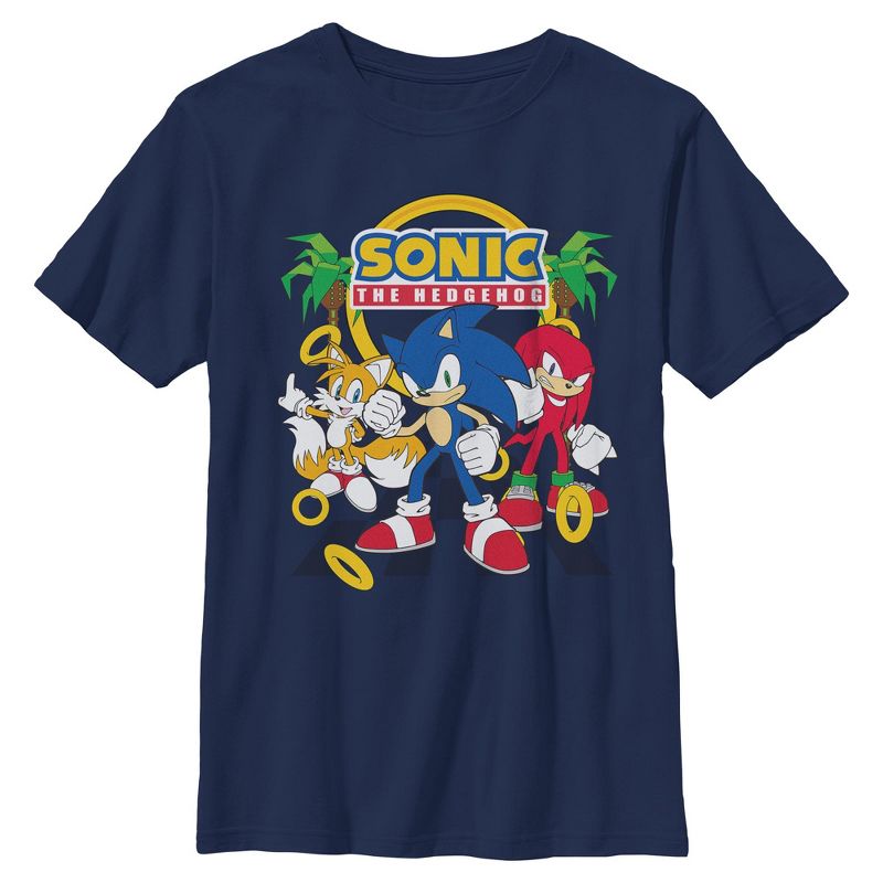 - Show off your gamer cred with this stylish new boys' t-shirt that is perfect for every occasion! Featuring Sonic, Tails, and Knuckles striking iconic poses, the classic video game logo, and the legendary golden rings proudly displayed across the front.