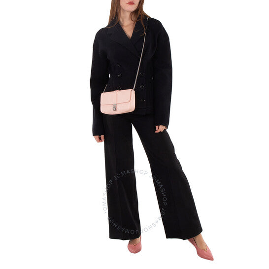 Ferragamo Ladies Mini Bag. SKU: 218340 769777. Color: Pink. Size: H: 4.7" x L: 9" x W: 1.7". Ferragamo Calfskin Mini Chain Bag. This mini bag features a front flap with a Gancini buckle clasp. Inside, it has a fabric lining with multiple slots that can replace a wallet. The metal shoulder strap which has squared chain links and is removable, allowing the handbag to be used as a clutch. 100% Calfskin. Made in Italy.