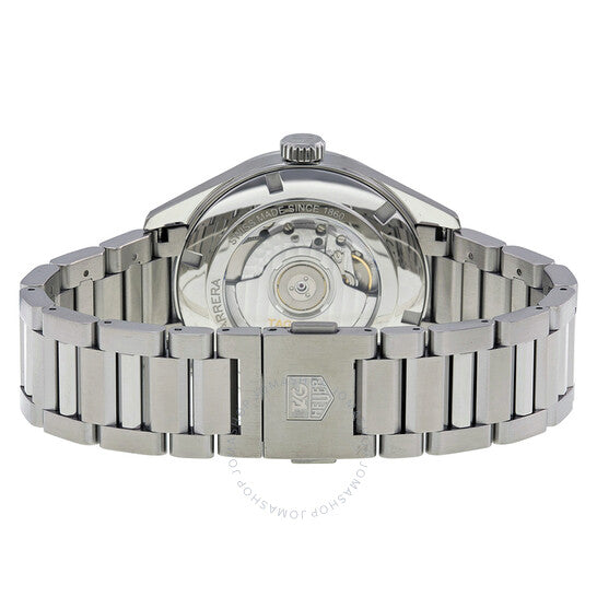 Stainless steel case with a stainless steel bracelet. Fixed stainless steel bezel. Black dial with luminous silver-tone hands and index hour markers. 24 hour (GMT) markers. Minute markers. Luminescent hands and markers. Date display at the 3 o'clock position. Automatic movement with a 42-hour power reserve. Scratch resistant synthetic sapphire crystal. Push / pull crown. Transparent case back. Case diameter: 41 mm. Case thickness: 12 mm. Round case shape. Deployment clasp with a double push button release. Water resistant at 100 meters / 330 feet. Luxury watch style. Tag Heuer Carrera Dual Time Black Dial Stainless Steel Men's Watch WAR2010BA0723.
