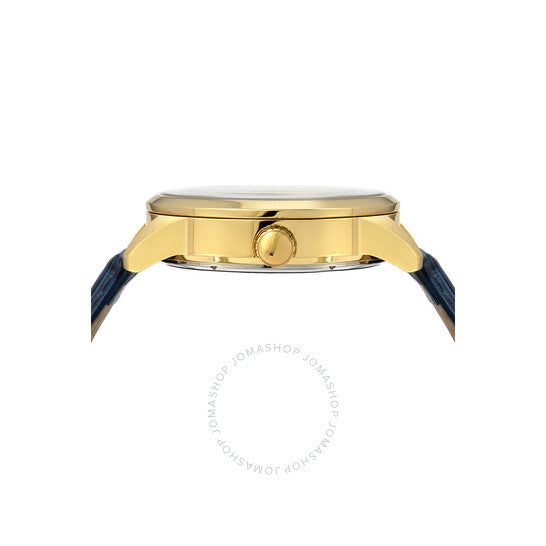 Yellow gold-tone stainless steel case with a blue leather strap. Fixed yellow gold-tone bezel. Blue (skeleton center) dial with luminous yellow gold-tone hands and index hour markers. Dial Type: Analog. Luminescent hands. Small seconds sub-dial. Miyota caliber 8N40 automatic movement. Scratch resistant saphire-coated mineral crystal. Pull / push crown. Transparent case back. Round case shape. Case size: 45 mm. Case thickness: 10 mm. Band width: 20 mm. Tang clasp. Water resistant at 50 meters / 165 feet. Functions: hour, minute, second. Cassius Automatic Series. Luxury watch style. Watch label: Japan Movt. Porsamo Bleu Cassius Automatic Blue Dial Men's Watch 802BCAL.