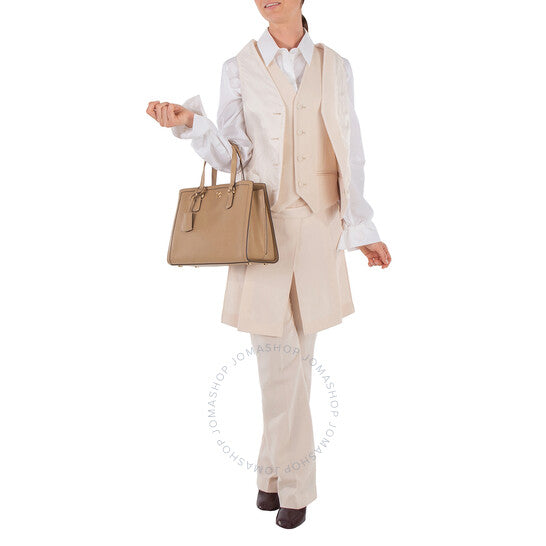 Michael Kors Ladies Satchel. SKU: 30F2G7CS2T-222. Color: Beige. Size: 12.75â x H:9.75â x D:6.25â. Michael Kors Chantal Medium Leather Satchel. This satchel features a back slip pocket, a center zip compartment, a front slip pocket, and a snap fastening. 100% leather, Lining: 100% polyester.