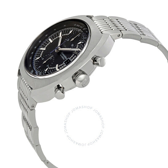 Silver-tone stainless steel case with a silver-tone stainless steel bracelet. Fixed silver-tone stainless steel bezel. Black dial with silver-tone hands and index hour markers. Tachymeter. Dial Type: Analog. Luminescent hands and markers. Date display at the 3 o'clock position. Chronograph - two sub-dials displaying: 30 minute and 12 hours. Oris Calibre 673, base ETA 7750 automatic movement with a 48-hour power reserve. Scratch resistant sapphire crystal. Solid case back. Round case shape. Case size: 40 mm. Band width: 19 mm. Water resistant at 100 meters / 330 feet. Functions: chronograph, date, hour, minute, second. Additional Info: limited edition of 1000 pieces. Casual watch style. Watch label: Swiss Made. Oris Chronoris Chronograph Automatic Black Dial Men's Watch 01 673 7739 4084-set MB.