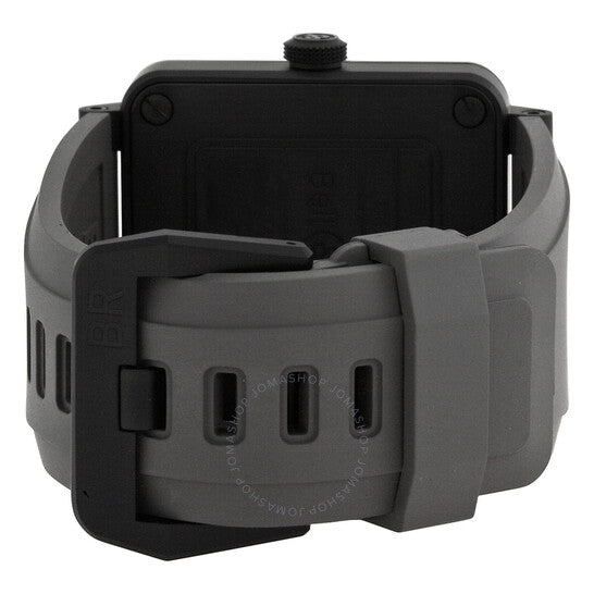 Grey ceramic case with a grey rubber strap. Fixed grey ceramic bezel. Grey dial with black hands and index hour markers. Arabic numerals mark the 3, 6, 9 and 12 o'clock positions. Minute markers around the outer rim. Dial Type: Analog. Luminescent hands. Date display between the 4 and 5 o'clock positions. Sellita caliber SW300-1 automatic movement with a 40-hour power reserve. Scratch resistant sapphire crystal. Pull / push crown. Solid case back. Square case shape. Case size: 42 mm. Case thickness: 9.8 mm. Tang clasp. Water resistant at 100 meters / 330 feet. Functions: date, hour, minute, second. Additional Info: supplied with an additional black canvas strap. Dress watch style. Watch label: Swiss Made. Item Variations: BR0392 COMMANDOCE, BR0392.COMMANDOCE, BR0392COMMANDOCE. Bell and Ross Commando Automatic Grey Dial Men's Watch R0392-COMMANDOCE.