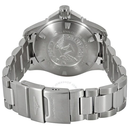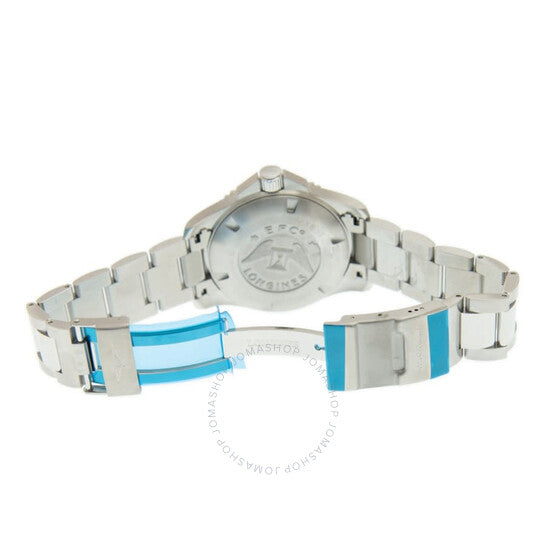 Silver-tone stainless steel case and bracelet. Uni-directional rotating silver-tone stainless steel with an inlaid green ceramic ring bezel. Green dial with luminous black hands and dot hour markers. Arabic numerals appear at the 6, 9 and 12 o'clock positions. Minute markers around the outer rim. Dial Type: Analog. Luminescent hands and markers. Date display at the 3 o'clock position. Longines Calibre L888 Automatic movement, based upon ETA A31.L11, containing 21 Jewels, bitting at 25200 vph, and has a power reserve of approximately 64 hours. Scratch resistant sapphire crystal. Screw down crown. Solid case back. Round case shape, case size: 43 mm, case thickness: 11.90 mm. Band width: 21 mm. Fold over clasp with a safety release. Water resistant at 300 meters / 1000 feet. Functions: date, hour, minute, second. Additional Info: original box, manual (complete accessories). Conquest Series. Dive watch style. Watch label: Swiss Made. Longines Conquest Automatic Green Dial Men's Watch L37824066.