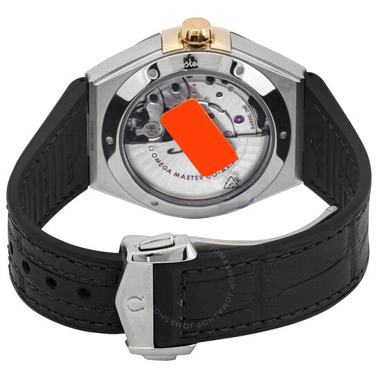Silver-tone stainless steel case with a green leather strap. Fixed black 18kt yellow gold bezel. Green dial with yellow gold-tone hands and index hour markers. Minute markers around the outer rim. Dial Type: Analog. Luminescent hands and markers. Date display at the 6 o'clock position. Omega Calibre 8900 Automatic movement, based upon Omega 8500, containing 39 Jewels, bitting at 25200 vph, and has a power reserve of approximately 60 hours. Scratch resistant sapphire crystal. Transparent see through case back. Round case shape, case size: 41 mm. Fold over clasp with a safety release. Water resistant at 50 meters / 165 feet. Functions: date, hour, minute, second, co-axial escapement, chronometer. Additional Info: original box, international warranty card, manual (complete accessories). Constellation Series. Luxury watch style. Watch label: Swiss Made. Omega Constellation Automatic Chronometer Green Dial Men's Watch 131.23.41.21.10.001.